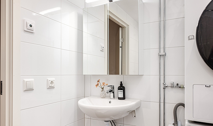 Samtliga lägenheter i huset har skapats från grunden och håller modern standard och stil med ljusa färgval, ekparkett i samtliga rum, modernt kök med bänkskiva i sten, induktionshäll, mikrovågsugn, diskmaskin och rostfria vitvaror som ingår i utrustningen. I badrummet finns handdukstork och tvättmaskin och torktumlare i samtliga lägenheter. Lägenheterna är utrustade med individuell mätning av kall- och varmvatten samt el, vilket debiteras efter förbrukning som ett tillägg på nedanstående hyresbelopp. Parkeringsplatser finns att hyra i området.